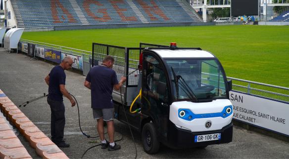 Au cœur du stade Armandie du SUA, le Goupil G4 est devenu un outil indispensable pour les équipes de maintenance. Nettoyage, transport de matériel, logistique des entraînements : un véritable allié du quotidien.